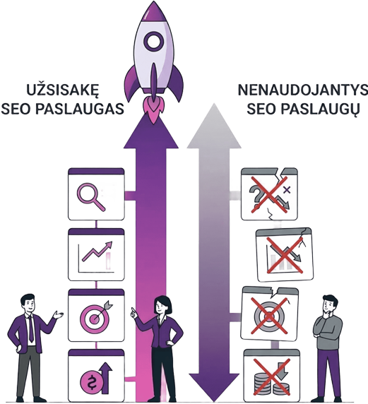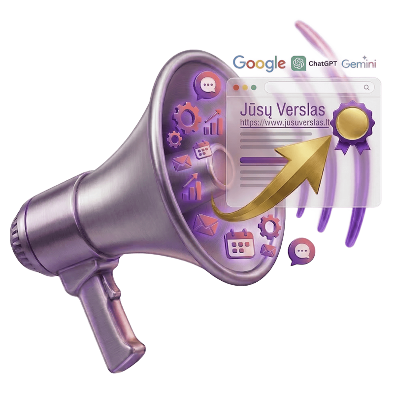 Įvertiname, kaip AI ir klasikiniai SEO sprendimai gali padidinti Jūsų matomumą, pritraukti daugiau lankytojų ir auginti pardavimus.